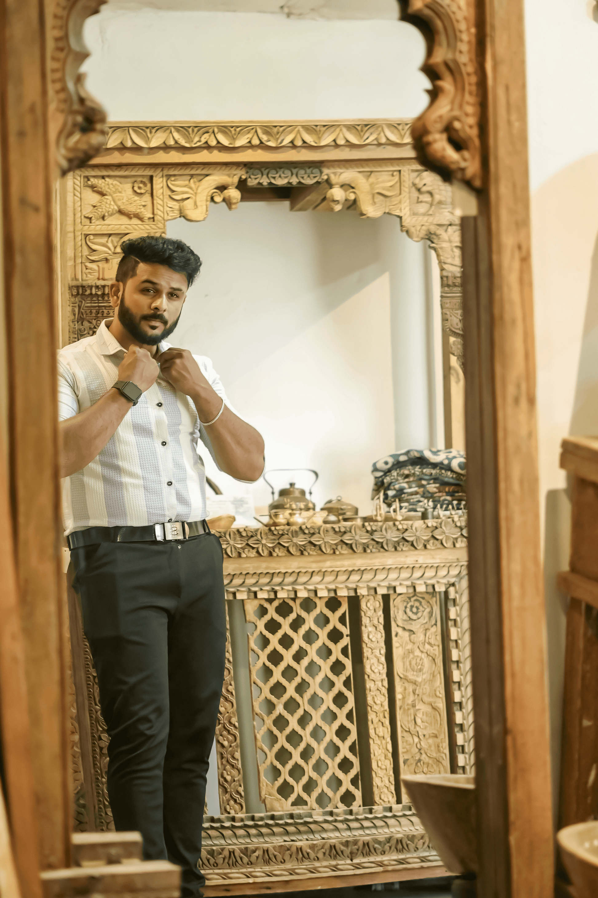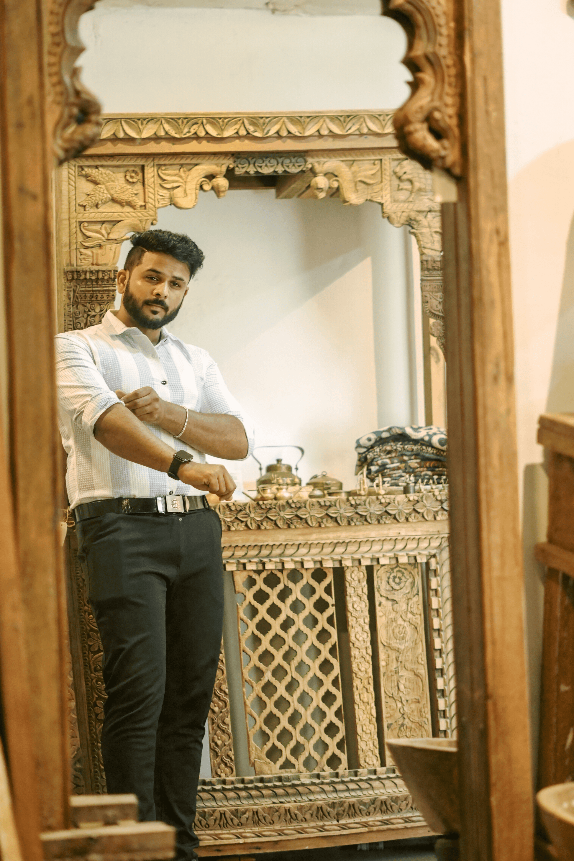 It fits like destiny, crisp and perfect, just like your best moments in life. When you roll up the sleeves, it gives that mass entry feel. “Unna vida stylish ah yaarum illa da” – that’s what your look will say. Whether it’s work, casual, or an evening vibe, this shirt blends into every frame. It’s not just fabric; it’s a feeling of class stitched into reality. The soft texture whispers comfort while the design shouts boldness.