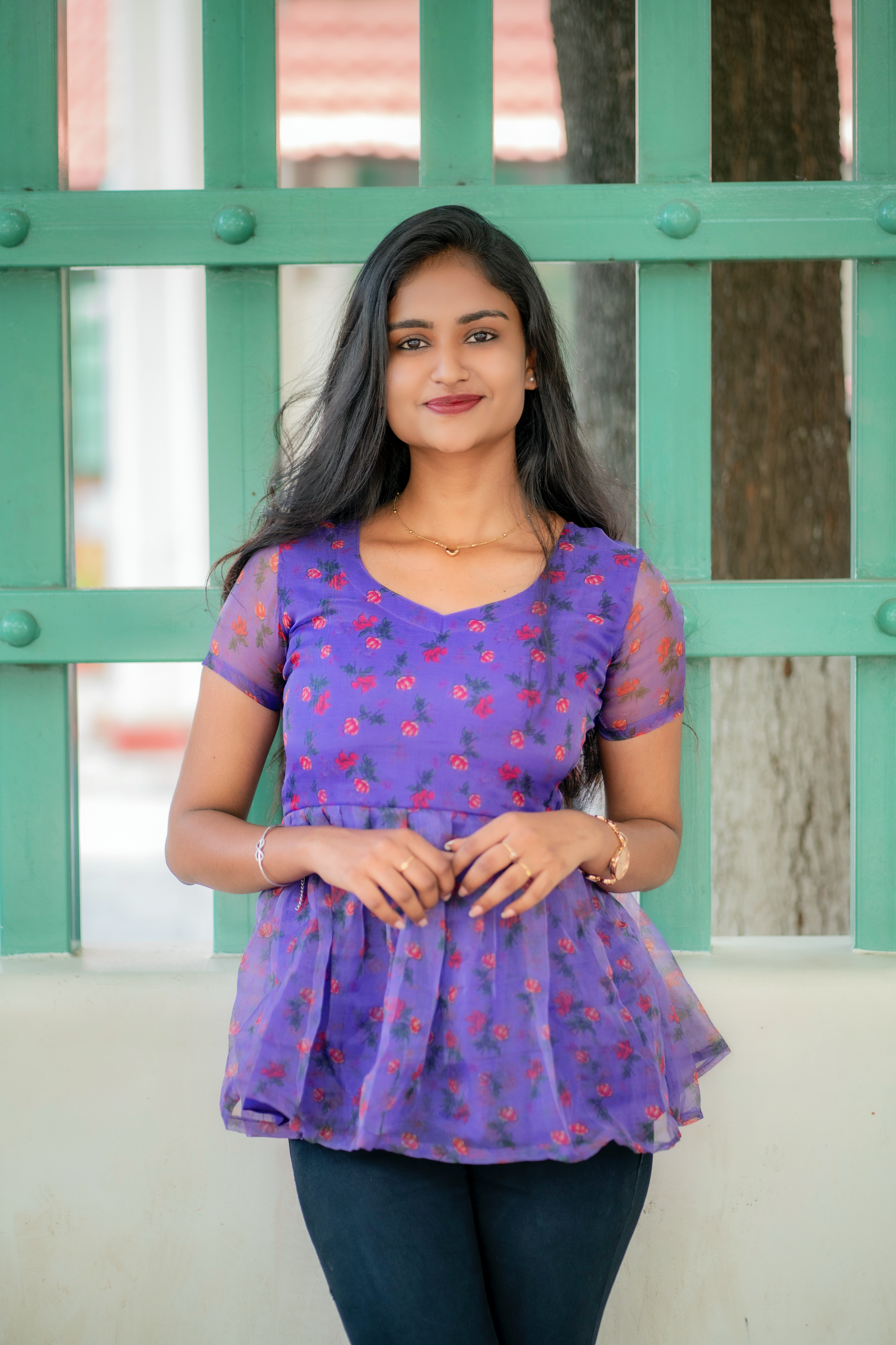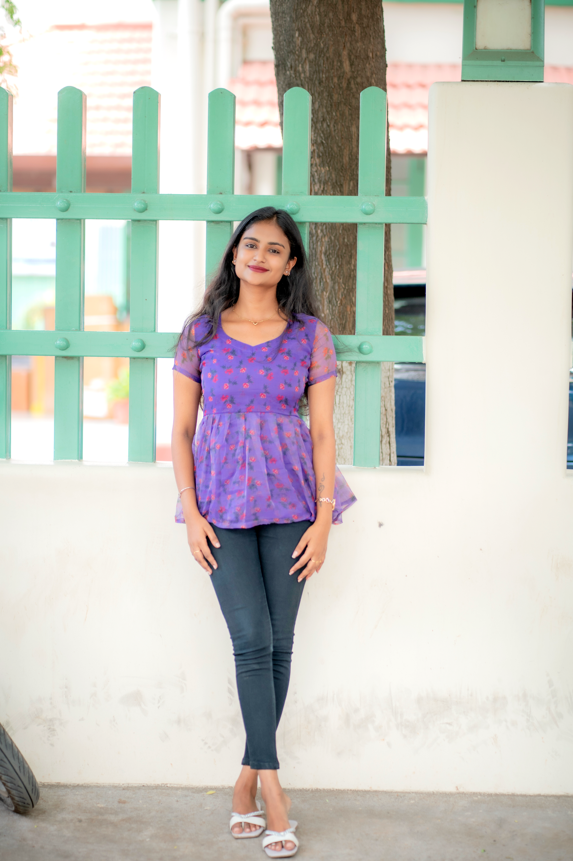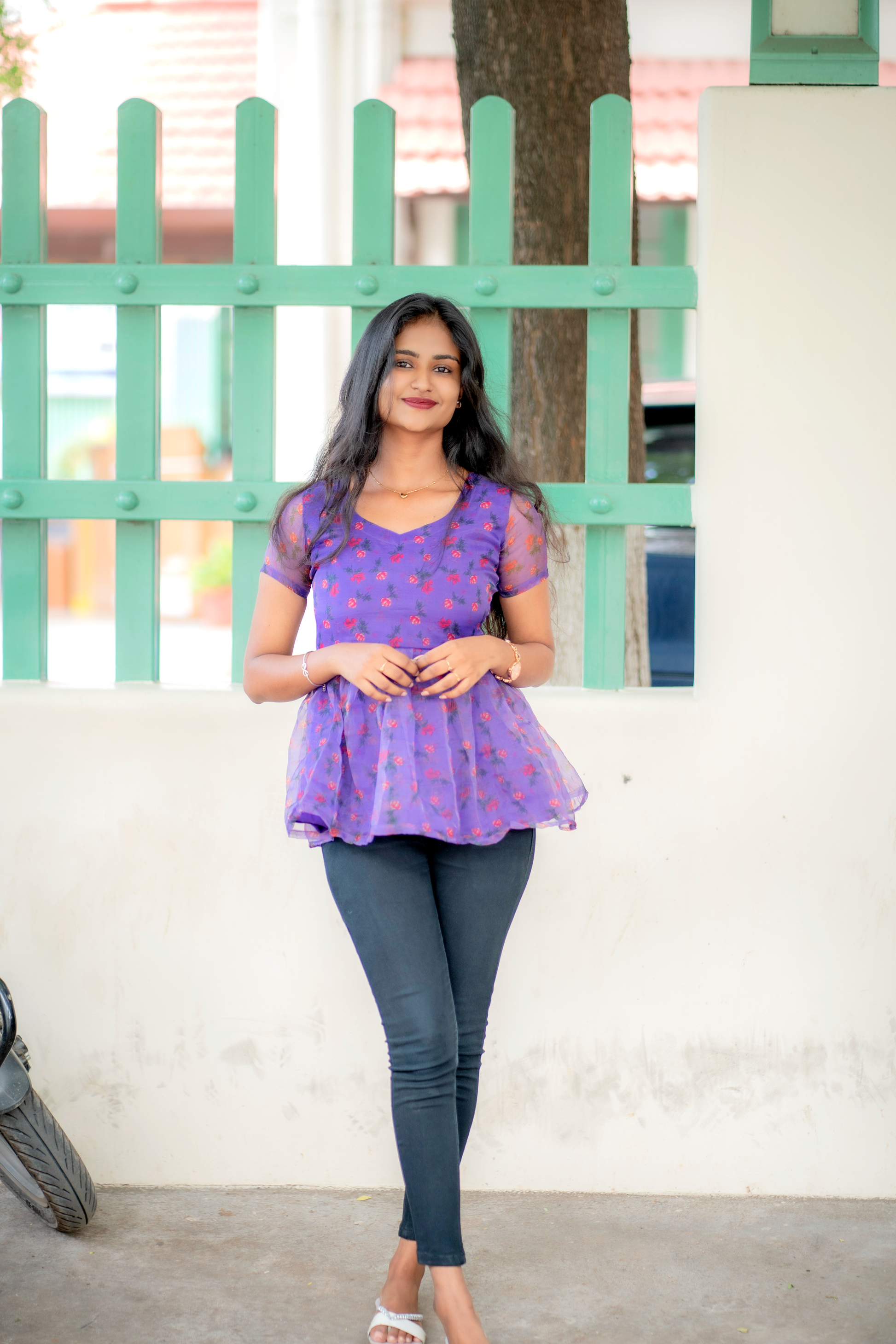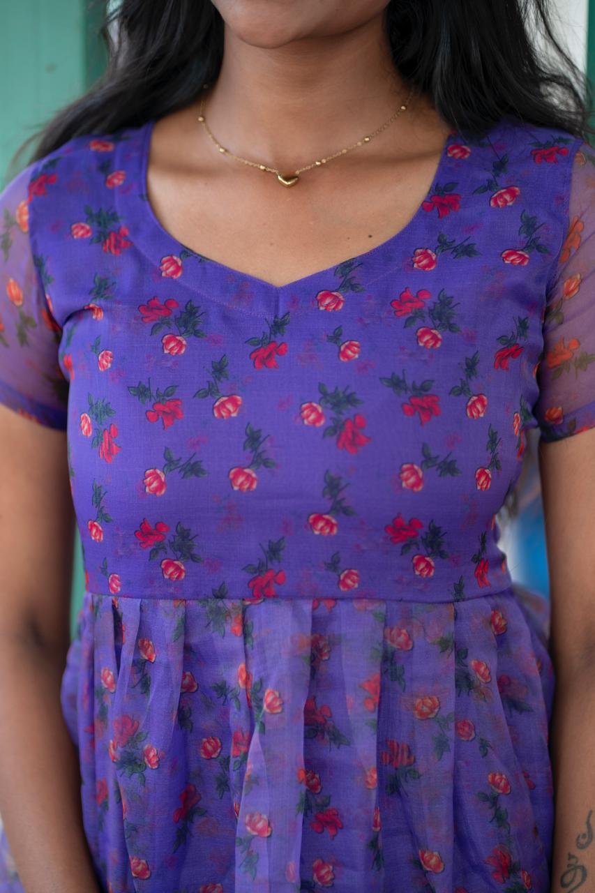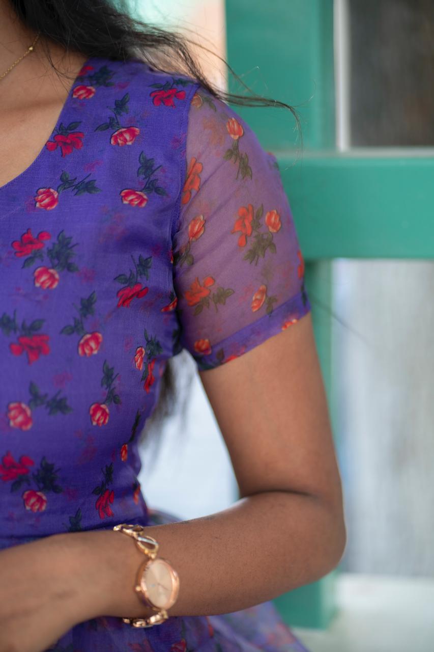 Soft like a summer breeze and sweet like a melody, this lavender floral printed peplum top is pure charm in every fold. The sheer sleeves and delicate flare add a graceful to your steps, making you feel like you’re in your own fairytale frame. As the line from a Tamil classic says, “Unnai paartha pinbu naan vaazha maatten…”that’s exactly how your wardrobe will feel without this dreamy piece! Pair it with black skinny jeans or a flowy skirt, and you’re ready to make hearts pause with your presence.💜